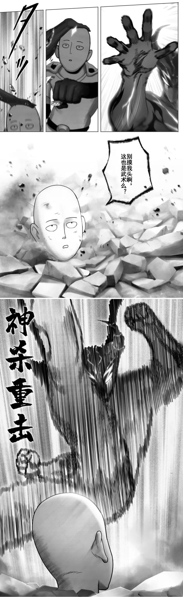 一拳超人同人漫画(02),饿狼打不过埼玉,直接爆粗口:你个秃子