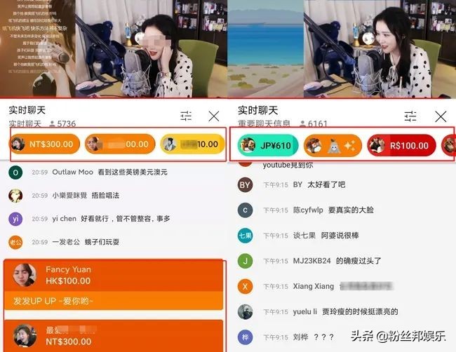 因为她所在的直播平台特殊性,打赏的礼物货币种类高达21个币种。