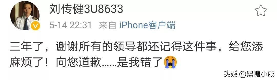 刘机长发的微博提到的三年应该就是8633事件三周年,但是这个“道歉”大多数人都没看明白,而且还说自己错了。