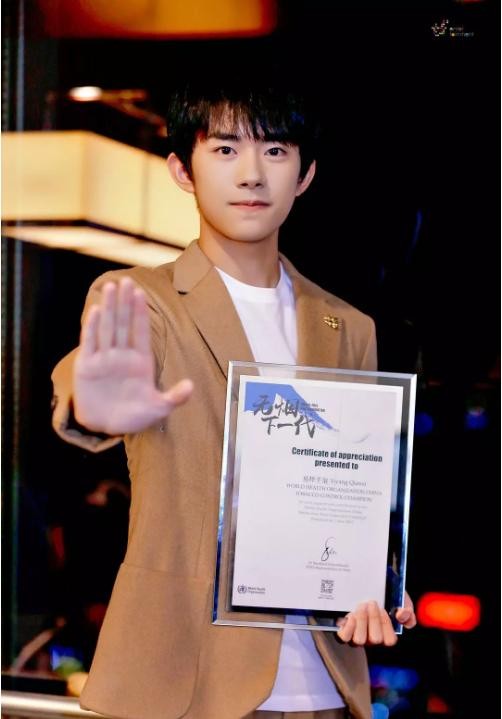 而同为TFboys组合的队友易烊千玺却是世界卫生组织的禁烟大使,易烊千玺在发布会上发声:成长路上,拒绝烟草!