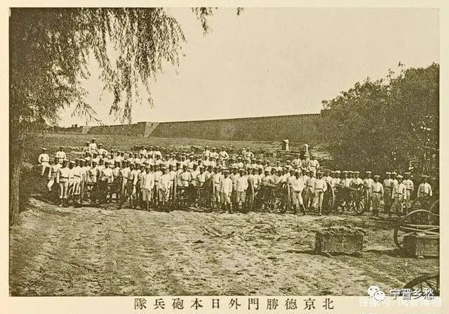 清末照片,北京德胜门外日本的炮兵队。