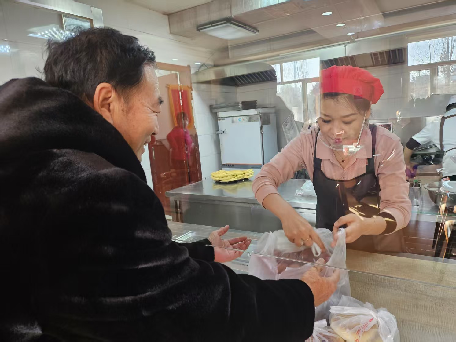 1月18日,在呼和浩特市新城区呼伦路社区为老服务餐厅内,虽然不到饭点,这里却已经聚集了不少社区居民。原来,大家都是来取预定的年货的。