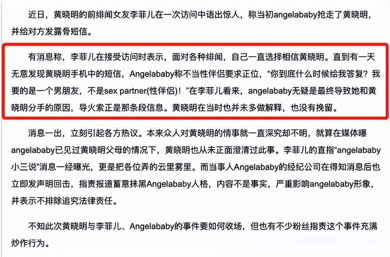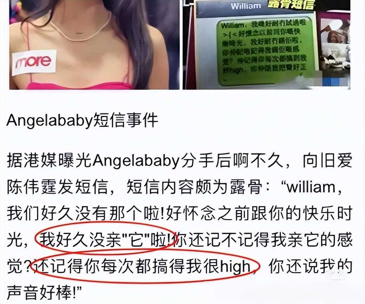 再往后,传来惊人消息,报道称baby曾向context poorest陈伟霆发送了大胆露骨的text message。此消息一出,在网上立即引骚动,一时间,黄晓明、baby、陈伟霆三人成为热门话题。然而,有粉丝出来澄清,这其实是香港传媒弄虚作假的谣言,时至今日已有十年,真假难辨。