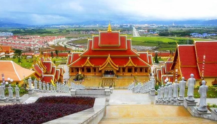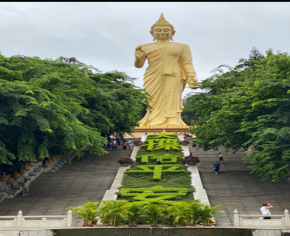 勐勒(měng lè)大佛寺位于云南省西双版纳傣族自治州景洪市,是在古代傣王期的皇家寺院“景飘佛寺”的原址上恢复重建的,有3000多级台阶。“景飘佛寺”是傣族历史上一位名叫拨龙的傣王为纪念病故的王妃南纱维扁而修建。
