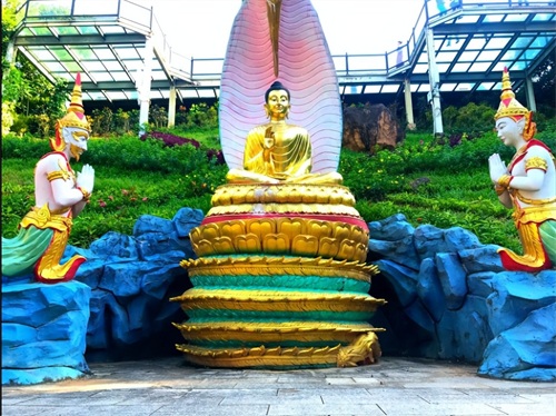 景区从山门到万佛塔,主要以佛祖释迦牟尼的诞辰,出家,成佛,弘法,涅槃为主线,展现佛祖伟大的一生。