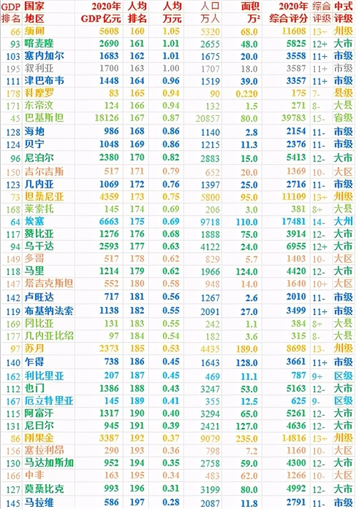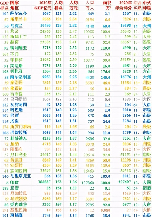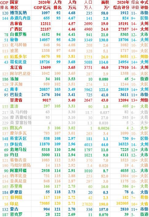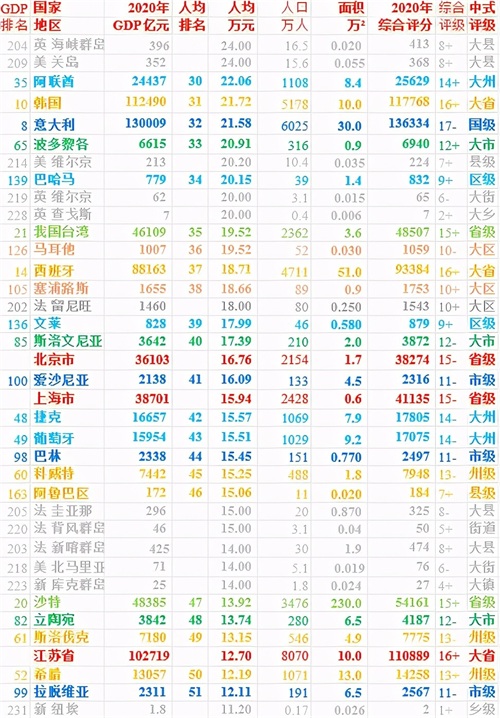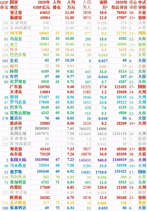 2020年世界各国人均GDP排名榜单还包含我国各省份及世界各国总共280个国家和地区的面积数据、包含世界各国评级数据、包含世界各国人口数据。
