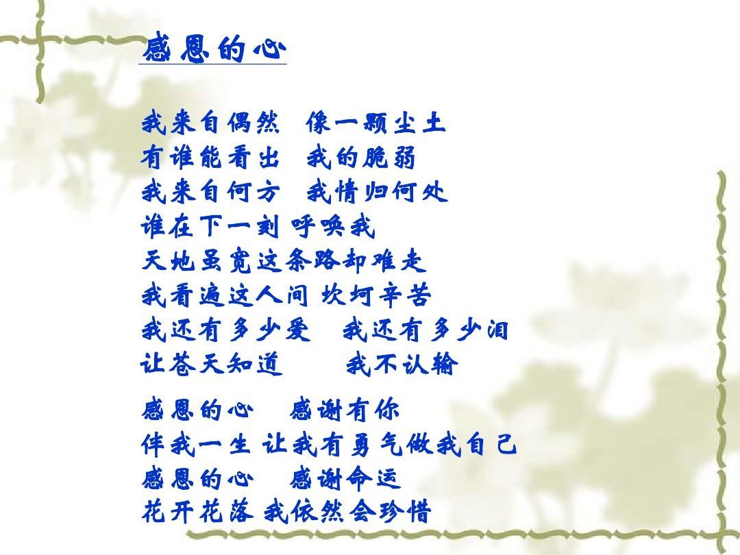 特别是90后的校园生活中,每次有合唱曲目,那么《感恩的心》必会在首选之列,甚至他的手语都刻画在人的脑海中。