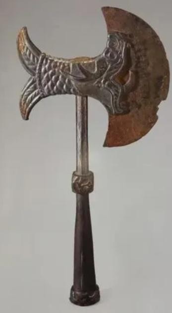 钺在实战中使用的时间不长,它在夏商周三代是战车上具有巨大威慑的重武器,也是天子的武器,后来由于太过笨重而被淘汰。