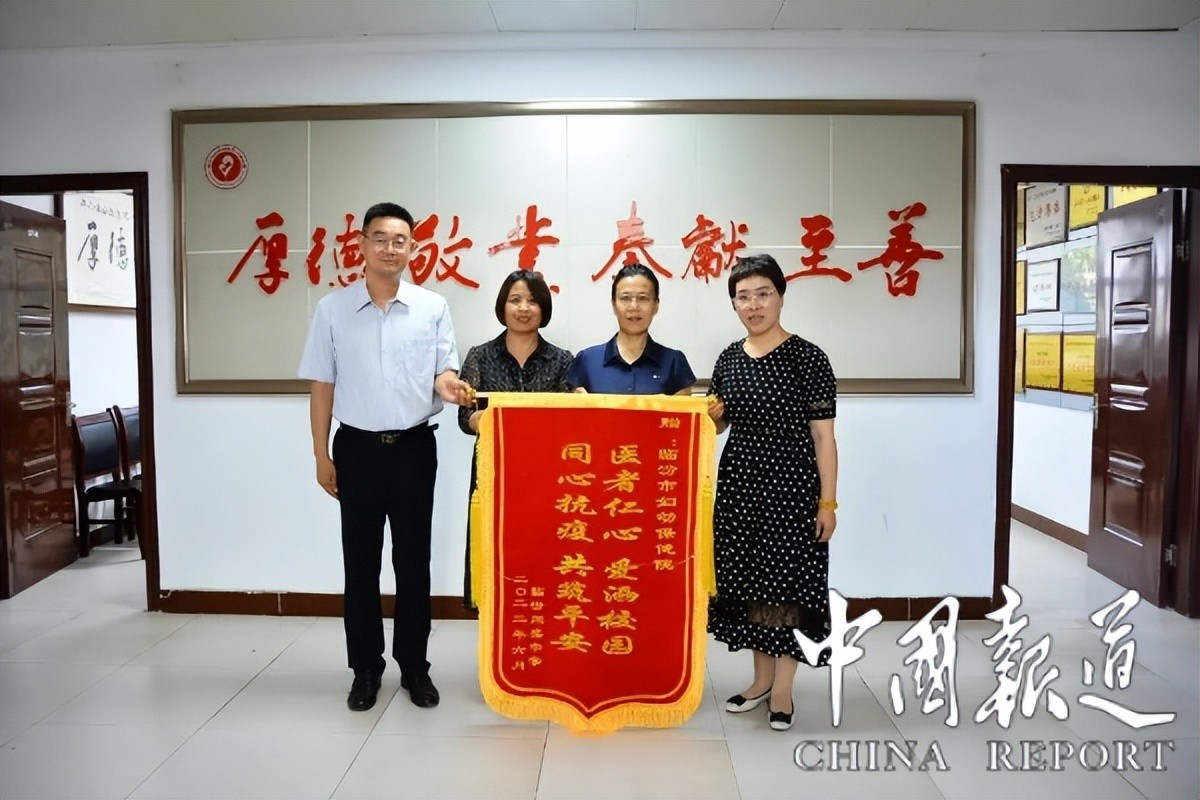 “医者仁心、爱洒校园、同心抗疫、共筑平安”,6月13日上午,临汾同盛中学党支部书记兼教育处主任段磊,校办公室主任韩志萍将一面承载着全校师生深深谢意的锦旗送到临汾市妇幼保健院儿童医院。