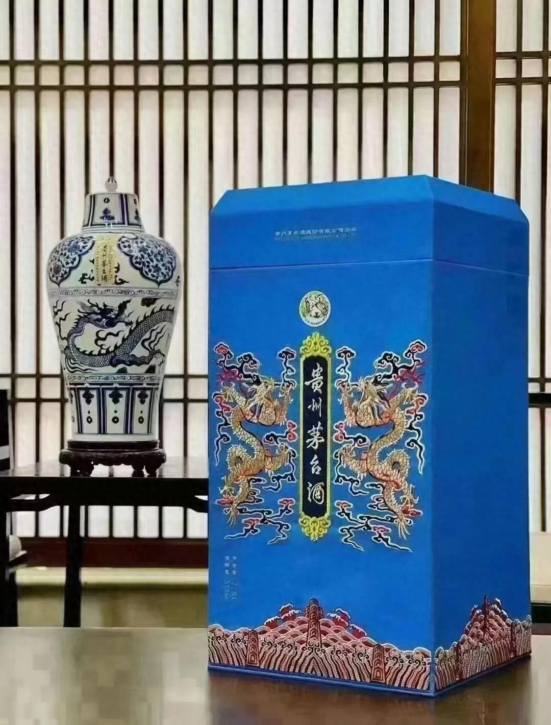 元代是青花瓷器日臻成熟的年代.同期,烧酒技术也应运而生,据李时珍《本草纲目)ニ十五卷《谷部》记载:“烧酒非古法也,自元时始创"如今。用仿元青花龙纹梅瓶盛装费州茅台酒,将名酒、名瓷、名器完美融合在一起,可谓珠联豊合,相得益彰,展示出贵州茅台酒的尊货大气和丰富内涵,传神地还原了其“清沾美酒”的历史功用,在国学复兴的当下,对传承和发扬中国传统文化有着积极意义、正所谓: