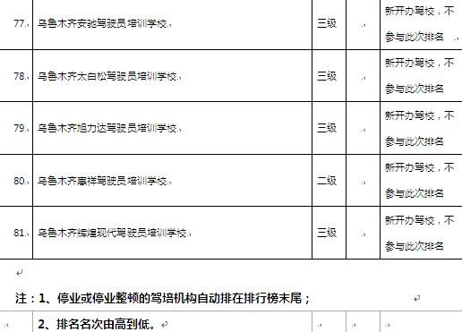 据了解,这是乌市首次对外公开驾培机构综合排名,排名情况为今年第三季度的考评结果,主要从教学质量、驾培机构信誉考核、驾培机构质量信誉考核、教练员信誉、考试合格率、学员评价等方面对驾校进行排名考核。