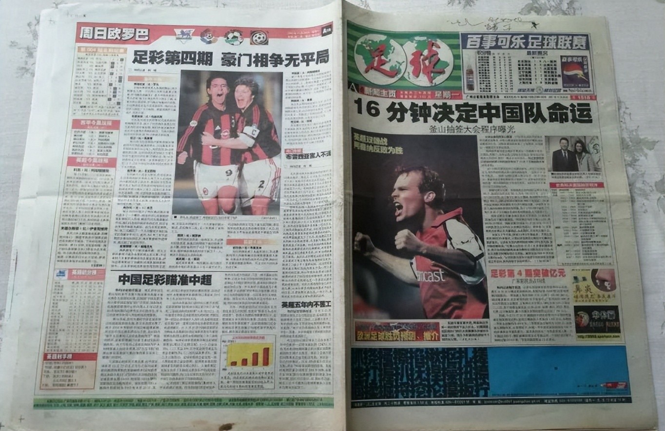 2001年的《足球》报,网络日益发展起来了,但没有普及。《足球》可能是学生们的最爱了。日韩世界杯,《足球》报还推出了贾美女,详细描写了贾美女如何与足球结缘,好像是在学校被足球砸到了。恰好国内有塞尔维亚风,正好发挥其语言优势。同期还有《体坛周报》,两者争奇斗艳。