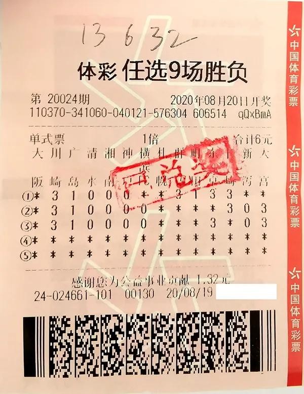 好运爆棚,滨州购彩者喜获足彩任选9场一等奖13632元