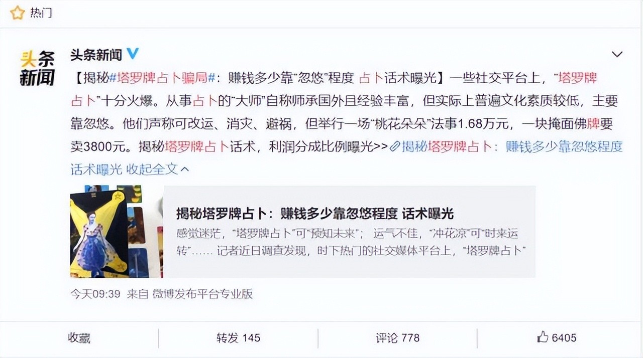 近期,有非常多的新闻报道,很多小伙伴通过所谓的“塔罗师”询问桃花、事业问题,做各种各样的挽回仪式,最后被骗几十w的案例。
