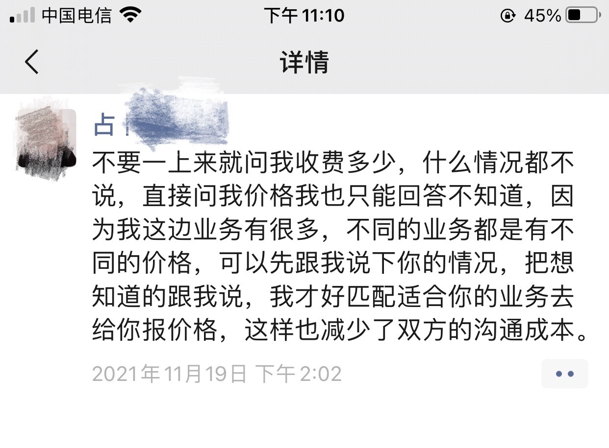 第三种,在问完你的基本情况,并且收完F以后,直接扔给你一个以你的名字命名的Word文档,美其名曰是给你定制的“咨询方案”,但实际上,这些内容都是复制黏贴过来的话术,比如分手复合,他们提前会定好能复合、不能复合、复合难度比较大等4、5种话术,根据你的情况复制黏贴一种话术给到你,你以为对方给你定制了一个专属方案,其实,其他的大冤种和你收到的方案,是一模一样的,只不过改了个标题而已。
