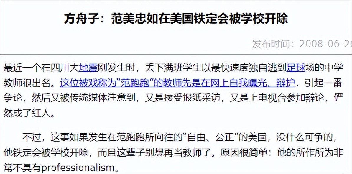 就连方舟子都评价说,范美忠这样的老师放在美国是要被开除的。