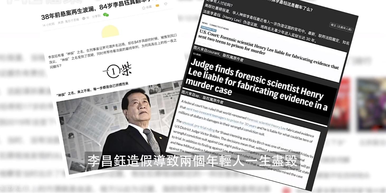 2023年7月21日星期五一则新闻在炎热的夏季炸开了锅。被称为华人神探的李昌钰博士在一起谋杀案翻案重审中,被法官裁定对一起伪造证据事件负责。美联社引述哈特福德新闻报说,李昌钰在近40年前经手的一起谋杀案中伪造证据,导致康涅狄格州两名无辜男子入狱30年。