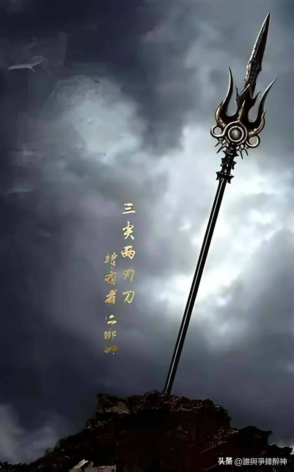 三尖两刃刀,二郎神杨戬的武器,重二万五千二百斤,也被称为三尖神蛟或三尖两刃戟。