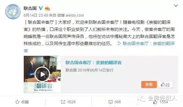 最近电视剧《翻译官》火了,火到啥程度?连联合国都翻了牌子。