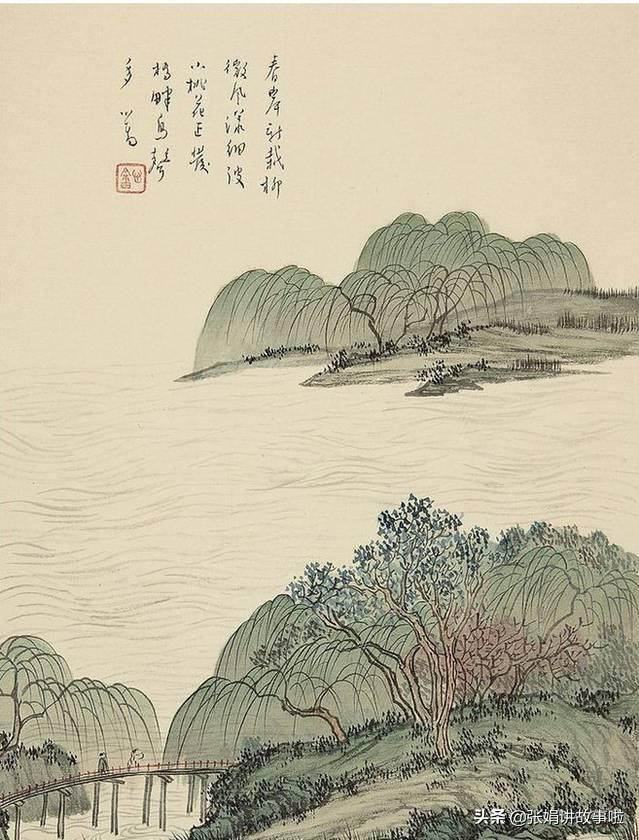 春来,绿水新涨一篙深,盈盈地涨平了水面。水边芳草如茵,鹅儿的脚丫蹒跚,鲜嫩的草色,在微风习习吹拂里,染绿了河塘堤岸。画船轻缓移动,绕着九曲水湾游转,望去,横塘高塔,在眼前很近,却又像启船时一样遥远。