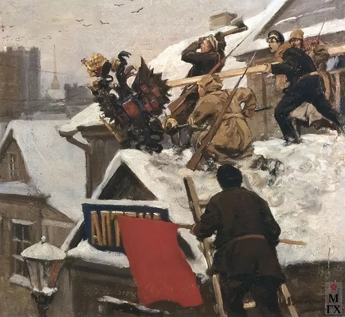 1917年11月7日,以弗拉基米尔·伊里奇·列宁为领导的布尔什维克党武装力量向资产阶级临时政府所在地圣彼得堡冬宫发起总攻,推翻了临时政府,建立了苏维埃政权。