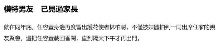 今年3月,任容萱与林柏澍亲密外出采买的画面又被媒体拍到,男方还开着百万豪车与任容萱一同回家。于是外界猜测,他们的感情非常稳定。