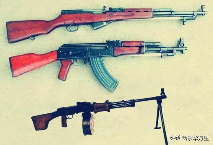 同时,也不利于在战场上的相互补充。结合实际情况,50年代中期,我国在苏联AK47自动步枪、SKS半自动步枪、RPD轻机枪的基础上,进一步仿制和改进,先后推出了56式冲锋枪、56式半自动步枪、56式轻机枪,形成了赫赫有名的56家族。在六七十年代,属于解放军陆军步兵班的标准配置。