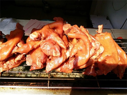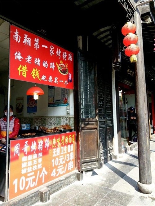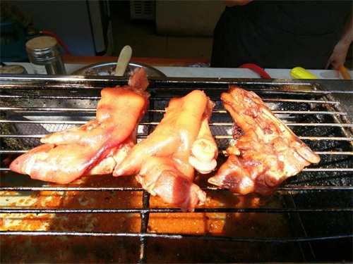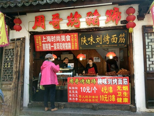 除了老字号的南翔小笼包,时尚美食烤猪蹄也很受游客欢迎。