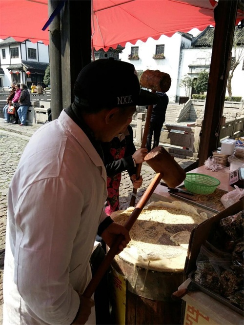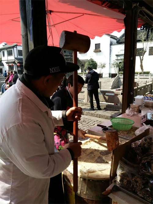 现场手工制作花生酥糖