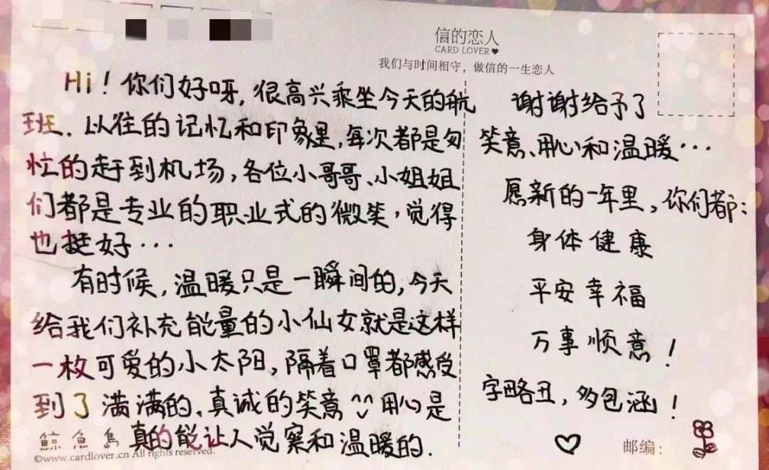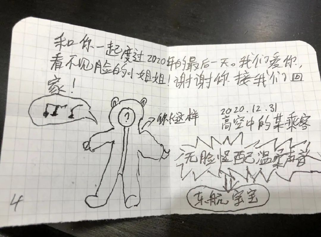 防护服又闷又热,服务完今天的航班,你们没有机会和家人朋友一起跨年了,忍不住在颠簸中写封信,告诉你,有人因你的付出而温暖感动。所有的这些辛苦,我看见了,共情到了。