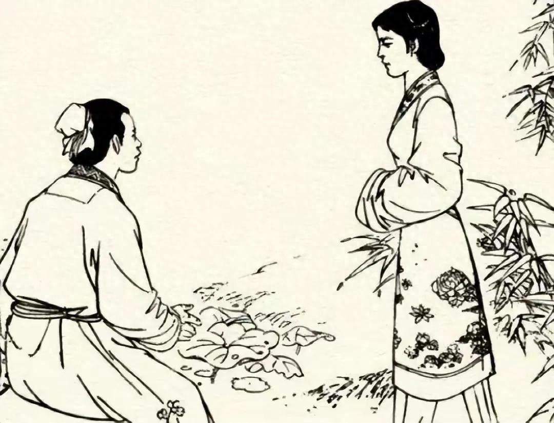 小宝蹲着看了小姑娘一会儿,又站起身来拔弄插在小姑娘辫子里的草标。小姑娘见小宝要来拔她头上的草标,身子向后缩了缩,瞟了小宝一眼。