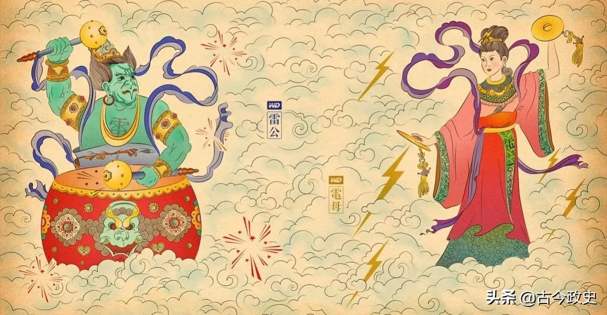 他们俩常常一起出现,原先的职能就是管理雷电。到了后来,就有了惩恶扬善的作用,如果有人犯了天都不能饶恕的罪过,那么天帝就会派雷公电母用五雷轰他,隆隆的声音好象上天发怒一样。