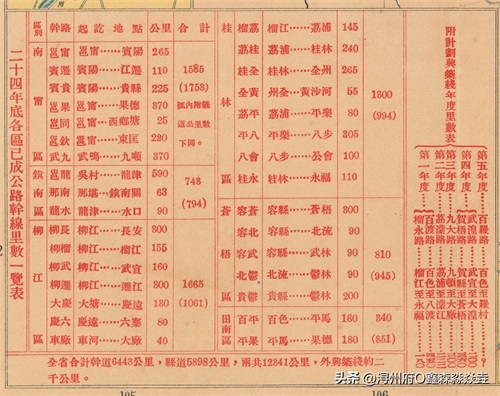 1935年广西公路建成一览表