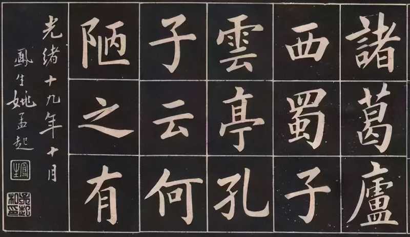 姚孟起是清朝的贡生,其在楷书的造诣上,近百年来罕有与其比肩者,如果说欧阳询建立了非常完备的字法体系,那么姚孟起就是这种标准体系的忠实践行者。姚孟起的这幅楷书《陋室铭》,法度严谨,结构出于欧体,灵气十足,让人赏心悦目。