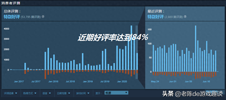 笔者玩游戏一般都是本着"能白嫖就不花钱"的原则,所以说这款游戏当然也是一款免费游戏了,虽说这是一款免费的游戏,但这部作品的质量可一点都不差,它可是有着84%的好评率。如果大家看完这篇文章后对这款游戏感兴趣,可以到steam平台去体验一下。