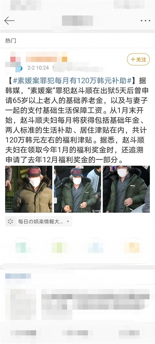 素媛案犯赵斗顺不仅出狱了,还每月可领120万韩币养老金,折合人民币将近七千元!