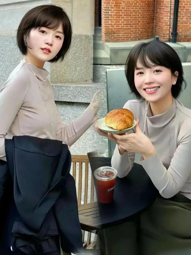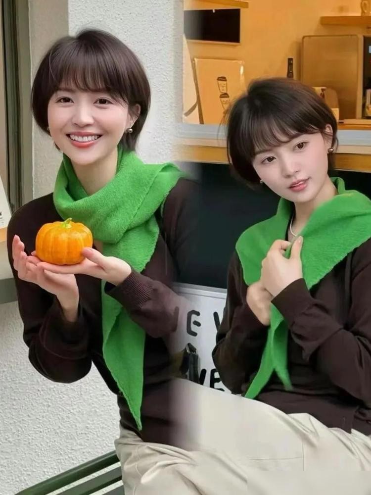 而且不管是这种齐肩短发还是lob发型,只要需要修饰脸型,尽量不要选择大脸裤,更不能尝试这种会遮挡住耳朵的厚重短发,否则会显得特别的土。