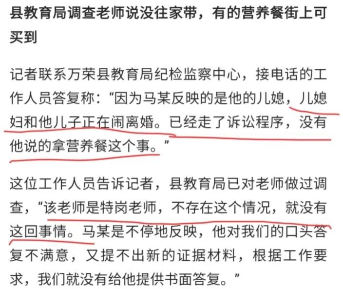退一万步说,就算儿媳妇拿了营养餐,作为公公,也不应该如此“落井下石”吧!