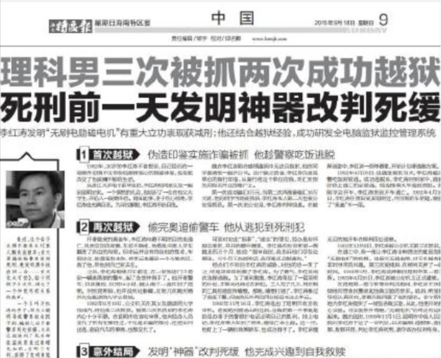 最牛死刑犯李洪涛:3次被捕 2次完美越狱 最后一个发明法院改判