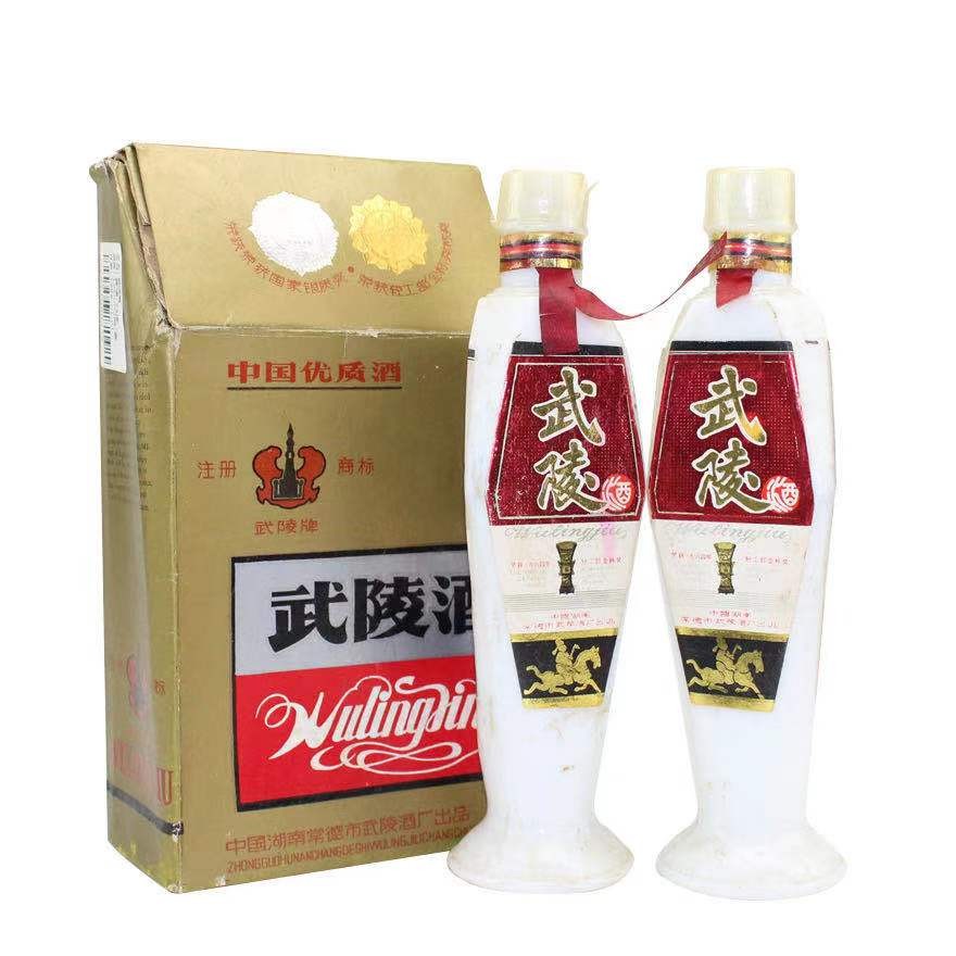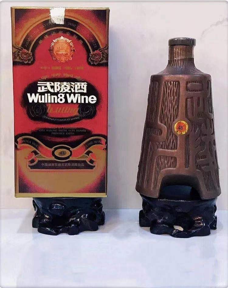 三角瓶武陵酒有玻璃瓶的,也有瓷瓶的,目前市面存在较少。