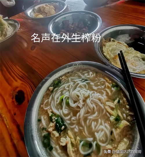 老城区的民宅、商铺多是翻建显得富裕而现代洋气,夹杂遗留有一些年代不一的老屋,但随着新兴街区的兴旺发展,配套的老单位如医院、银行等外迁或关停,更新的速度和步伐估计要放缓了。圩日里,老市场人气倒没有前几年旺,但也属不少,十里八乡的乡民及小贩,带着农副产品、靓货也会赶圩而来。如家禽摊的田鼠,又收也买;著名的邕宁那楼淮山也正是收获上市季;白家散种的水果值得拥有;但蔬菜类对比南宁城区,倒不显得便宜,有点小意外;当地壮族的美食代表“生榨粉”,味正,料足,遍地开花生意忙。赶圩为了吃粉的操作,也是许多60,70后广西人的童年美好记忆。