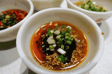 麻酱➕香油➕小米椒➕蒜泥➕陈醋➕白糖➕芝麻葱花➕香菜
