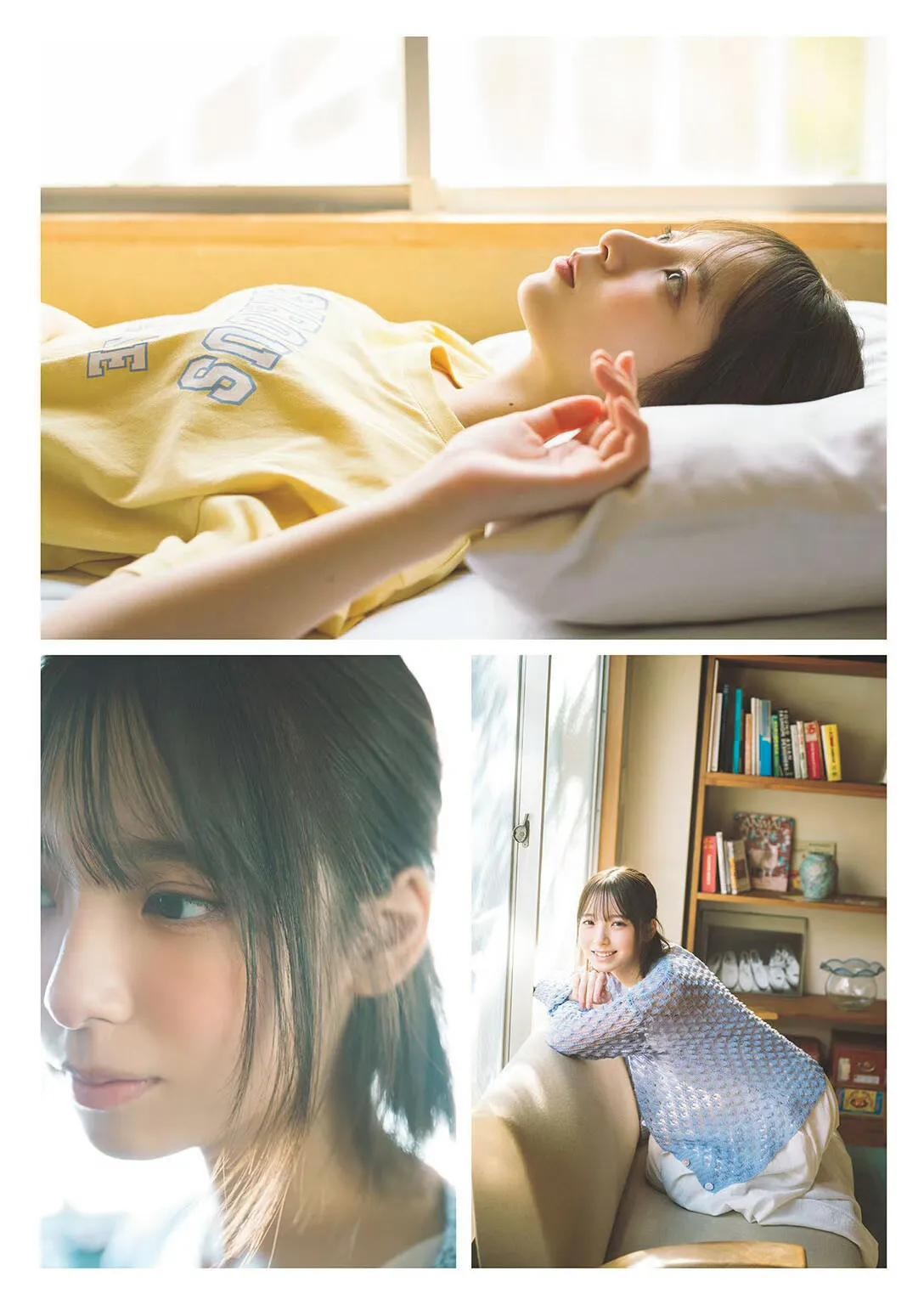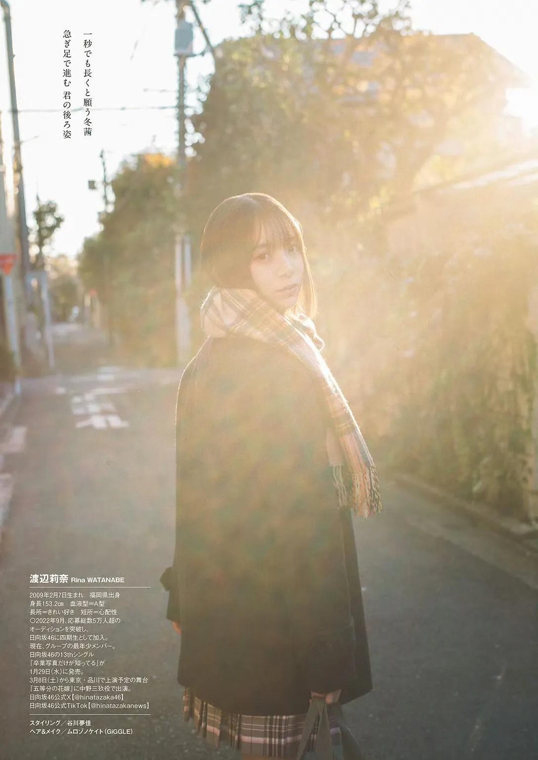 去年,在四期生的乐曲《夕阳Dance》中第一次担任中心的渡边莉奈,15岁的她虽然有着天真的一面,但总给人一种成熟的感觉。这次写真以“王道女主角”为题,以夕阳的晚景为主,进行了拍摄。