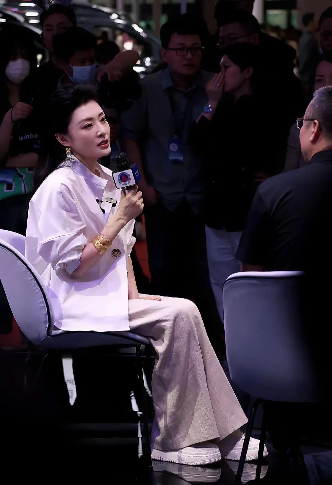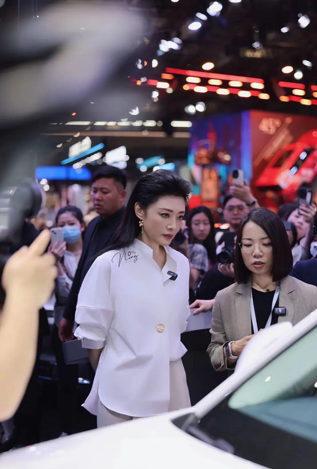 周涛亮相上海车展,白衬衫配阔腿裤太亮眼,57岁气质不输年轻人