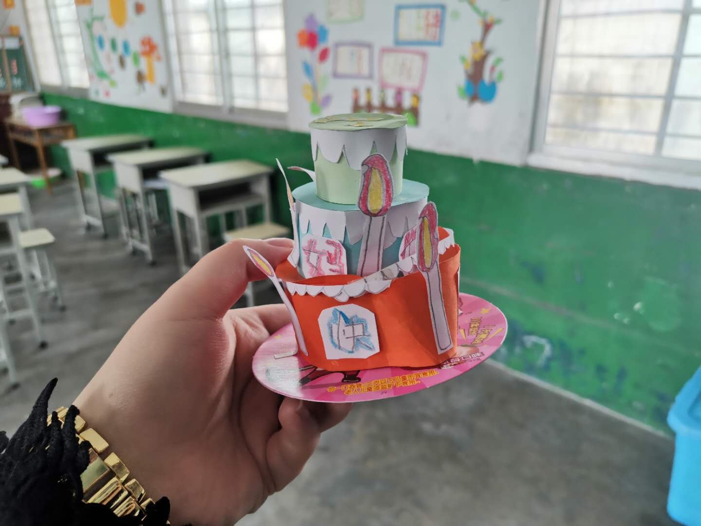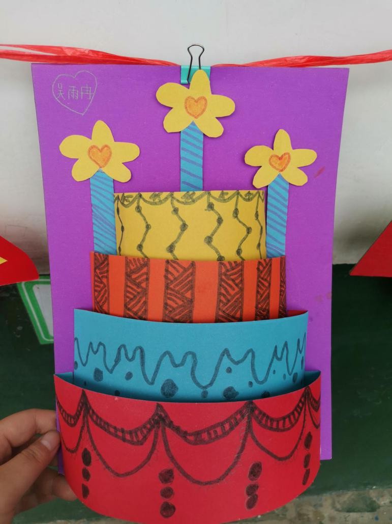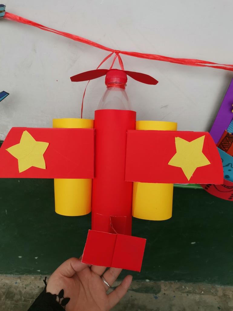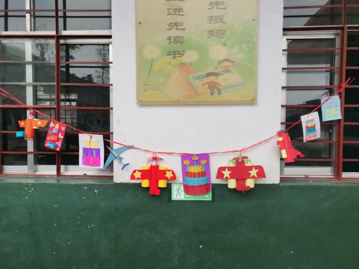 创意就有创新,孩子们放飞想象的翅膀,与自己的家长合作,做出了一个个独具匠心的手工作品。有的孩子给瓶子脱去外包装纸,穿上五颜六色的"彩衣",做成了美丽的小飞机;有的孩子运用刚学习过的立体图形的拼搭,用几个圆柱做了个精致的小蛋糕;还有一些同学运用便利贴和彩纸,做成了一个个蛋糕卡片。