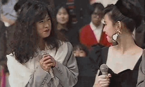 这位松田圣子也是个人物,人设是冒着粉红泡泡的甜美少女,山口百惠隐退后唯一能与中森明菜争锋乐坛的老对手。若只觉得她傻白甜那便大错特错了,她是卖出3000万张唱片、18次登上红白歌会的超级偶像,她的“圣子头”曾引无数青春少女争相模仿。但也有人称她“做作女”,比如这个著名的修罗场: