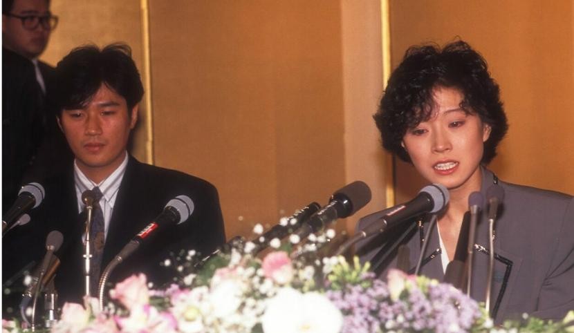 然而事情还没完。1989年的除夕夜,正在忙于报道红白歌会的媒体突然收到近藤真彦发来的与中森明菜结婚发表会的邀约。包括中森明菜在内的所有人,抵达现场看到那道金屏风,都以为这婚结定了,因为在日本,只有宣布婚讯时才会竖起金屏风。等近藤真彦姗姗来迟,大家才知道被他耍了。