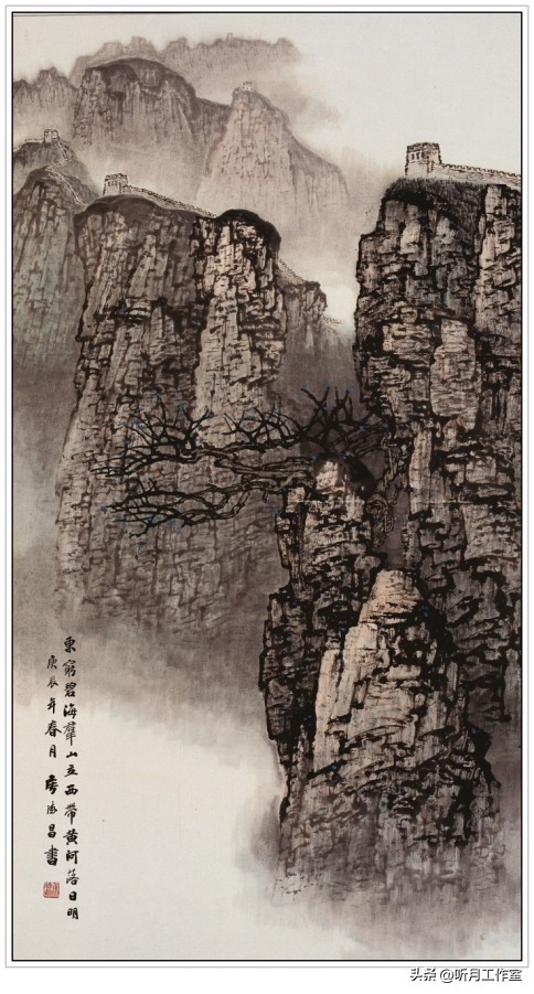 当代画家侯德昌《长城》纸本设色,纵180厘米横97厘米,2000年作。构图巧妙,色彩丰富。画家以精湛的笔法描绘长城之雄伟,细节之处见真章,展现出深厚的国画功底。