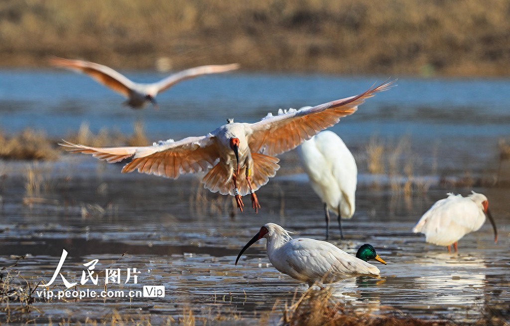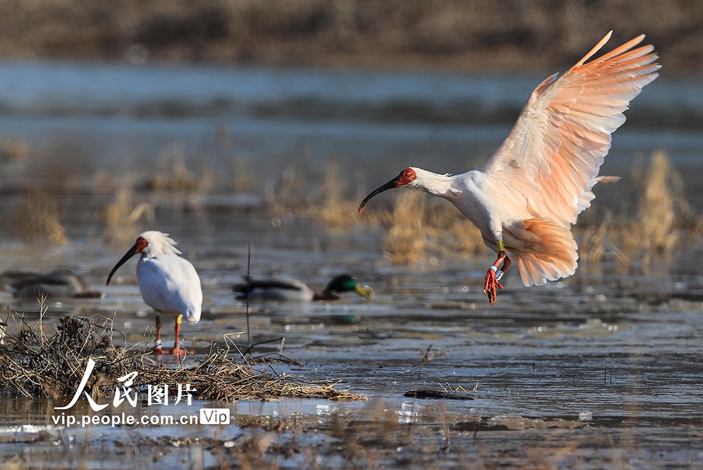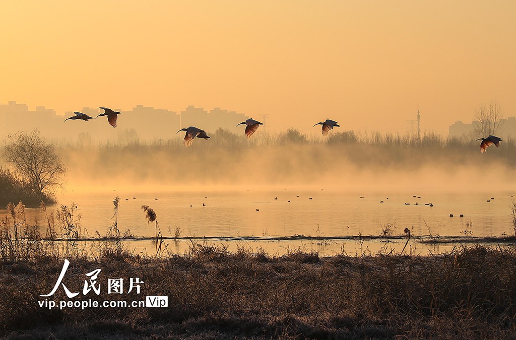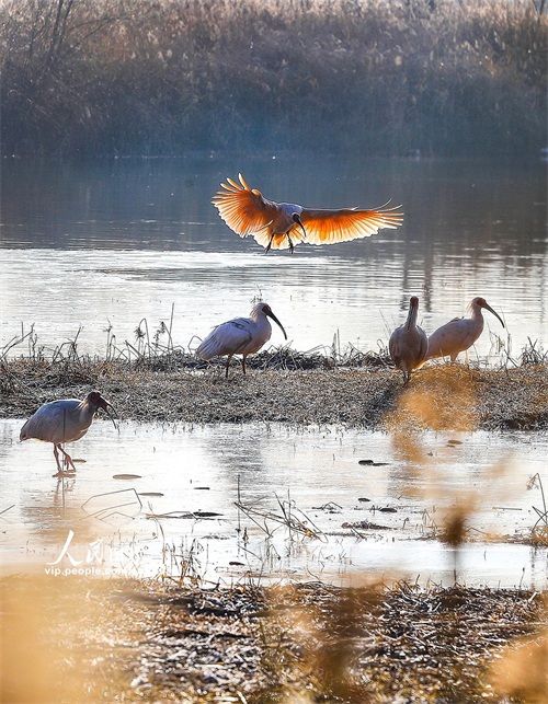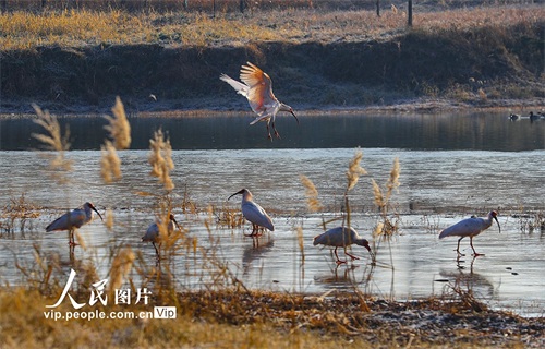 2024年12月16日,陕西省咸阳市渭河秦都段细柳营湿地里的朱鹮正在栖息、觅食。2024年10月15日,24只朱鹮在此地进行野化放飞。经过两个月的适应,放飞的朱鹮已基本适应了当地的野外生存和繁衍条件。这对增加秦岭北麓朱鹮野外种群数量、扩大栖息地范围、建立稳定的集合种群、增强抗风险能力以及促进种群间的扩散交流具有重要推动作用。李军朝摄(人民图片网)
