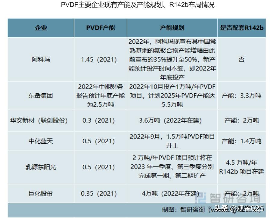 阿科玛、东岳集团、华安新材等内外资企业均看好PVDF在锂电池等领域的前景,竞相新增产能。